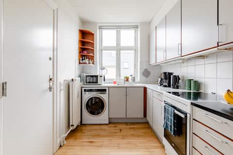 Bright and cosy 12m² room in a large 90m² apartment (4th floor & no lift) in the heart of trendy Vesterbro. Enjoy easy access to everything from this perfectly located home base that is within walking distance to the Central Station, metro, Tivoli, museums, restaurants, shops & bars. You will also have access to a courtyard where you can sit & enjoy a cold beverage while BBQing. Perfect for a single traveler who wants to enjoy a laid-back getaway or explore what Copenhagen has to offer.