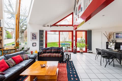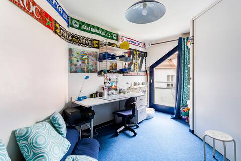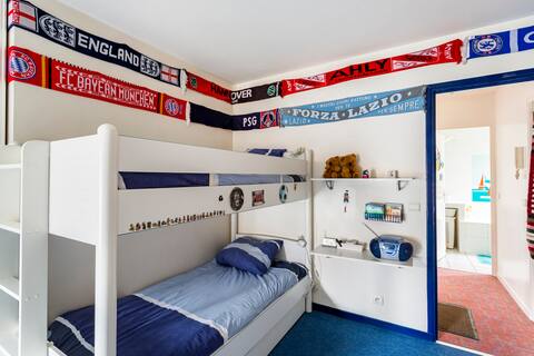 Accès à Paris par gare de clamart (15 mn de Montparnasse) ou ligne 12&13. Chambre avec 2 lits superposés et un canapé futon. Accès salle de bains et WC à l'étage