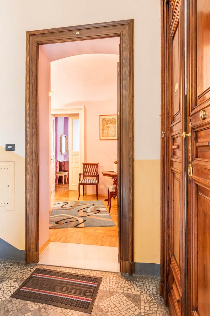 we are in a building of from the 1800's, in a quiet street but in the heart of historic Turin. to 10 min. the biggest square in Europe where ther's the night life. Convenient to all services. In the district you can find every day a local market with fresh produce, but there are also different supermarket. The small electric bus near the house will lead you under the with the Cinema museum, also Egyptian Museum or even the mayestic Piazza Castello.